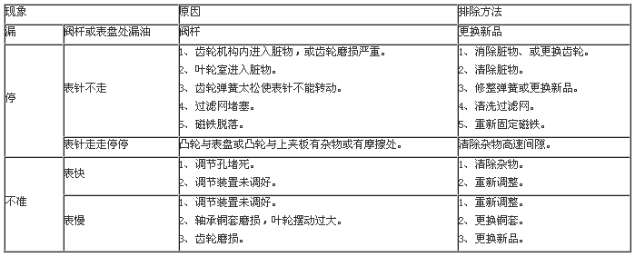 計量加油槍的故障常為“一漏、二停、三不準”,現將故障的原因和排除方法列表如下,以供用戶在保養中參考。