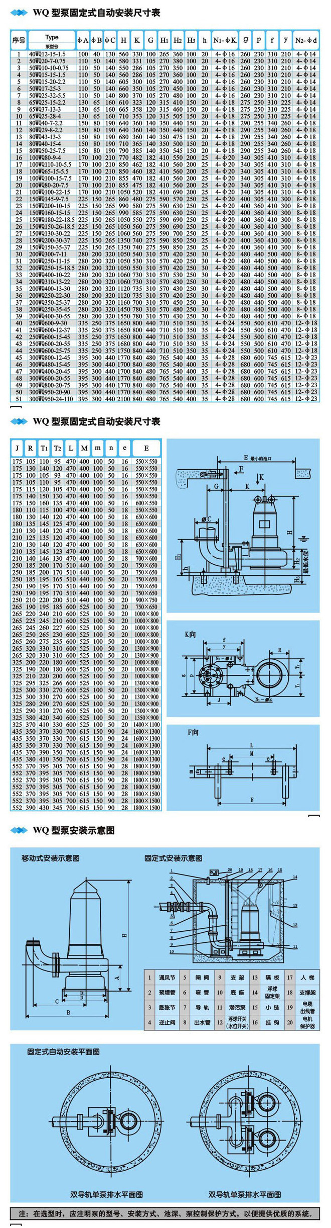 7.WQ系列可根據用戶需要配備雙導軌自動耦合安裝系統,它給安裝、維修帶來更大方便,人可不必為此而進入污水坑。