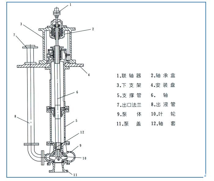 1.泵為立式液下泵,外形美觀,直接安裝在被輸送介質的儲存器上,無額外占地面積,從而降低了基建投入。